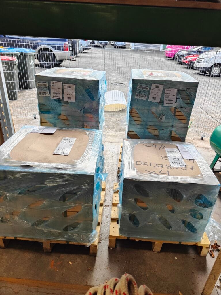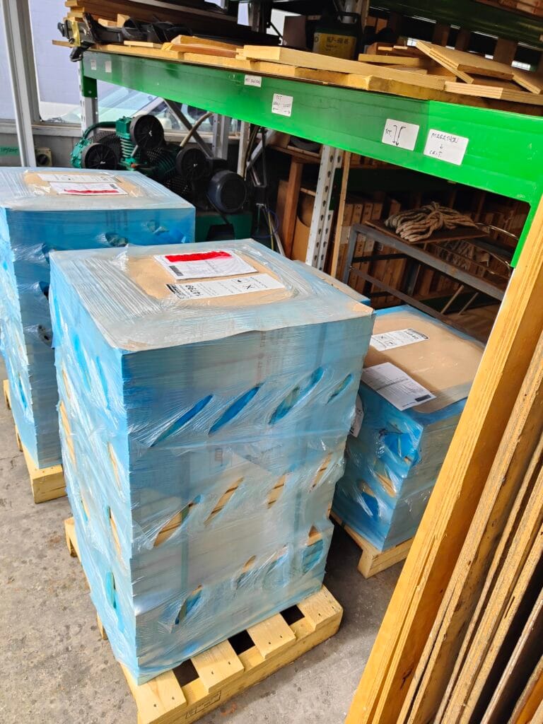 4 pallets of Hakansson Swedish Bi metal bandsaw blade coil material for us to turn into about 2500 blades of sizes from 6mm to 67mm and 1200mm to 12m long