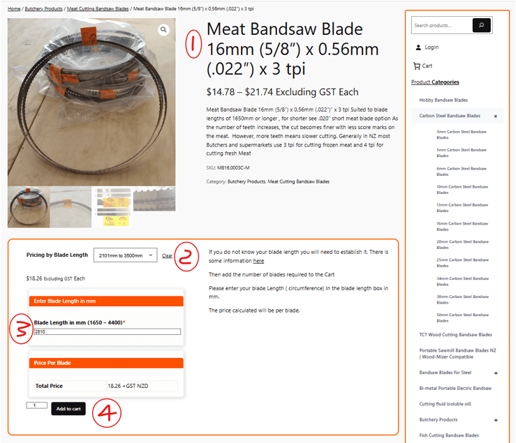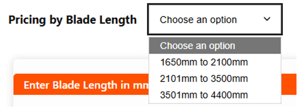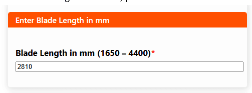 • Enter blade length 2810mm, price is calculated
